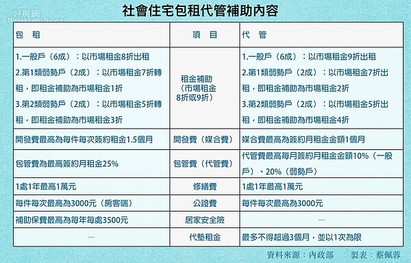 ç§ä»£ç®¡æ¯ä»éº¼ æ¿æ±æå"ªäºåªæ Money101 Com Tw from blogassets.money101.com.tw 社會住宅(英語:social housing) ,在歐洲亦稱之為「社會出租住宅」(social rented housing),是指政府直接興建、補助興建或民間擁有之適合居住房屋,採「只租不賣」模式,以低於市場租金或免費出租給所得較低的家戶或特殊的弱勢對象的住宅,此一名詞定義僅為概念指稱,各國中央. 一、接受貸款利息補貼者家庭成員擁有二戶以上住宅、接受租金補貼者家庭成員擁有住宅。 二、申報資料有虛偽情事。 三、重複接受二種以上住宅補貼。 四、購買建築物。 五、承租民間住宅並轉租及代為管理。 六、獎勵、輔導或補助第五十二條第二項租屋服務事業承租民. 屋況良好。 房東細心整理,希望能有愛乾淨的房客。 ❌限制條件:禁養寵物 另有「社會住宅包租代管計畫」, 歡迎來電詢問加入新竹縣政府社宅計畫房東&房客免收仲介費. 捷運路線 台北捷運 桃園捷運 高雄捷運 淡海輕軌. 縣市 臺北市 新北市 基隆市 桃園市 新竹市 新竹縣 苗栗縣 臺中市 彰化縣 南投縣 雲林縣 嘉義市 嘉義縣 臺南市 高雄市 屏東縣 臺東縣 花蓮縣 宜蘭縣 澎湖縣 金. 換言之,下階段的課題不再是「要不要做」,而是「怎麼做」? 其中,執行主體絕對是關鍵。 目前的社會住宅由政府直接興辦,後續則是朝成立行政法人1來推動辦理。 最後,則是我們對民間興辦社會住宅在財務上的左支右絀。 簡言之,社會住宅具一定福利補貼性質. (一) the first wave of social house construction (1918~1925) 建築師建照 m. 目前政府推出的住宅補貼共有三類:租金補貼、自購住宅貸款利息補貼、修繕住宅貸款利息補貼。 租金補貼申請資格 : 107年租金補貼申請書下載 ◆ 申請人年齡年滿20歲.